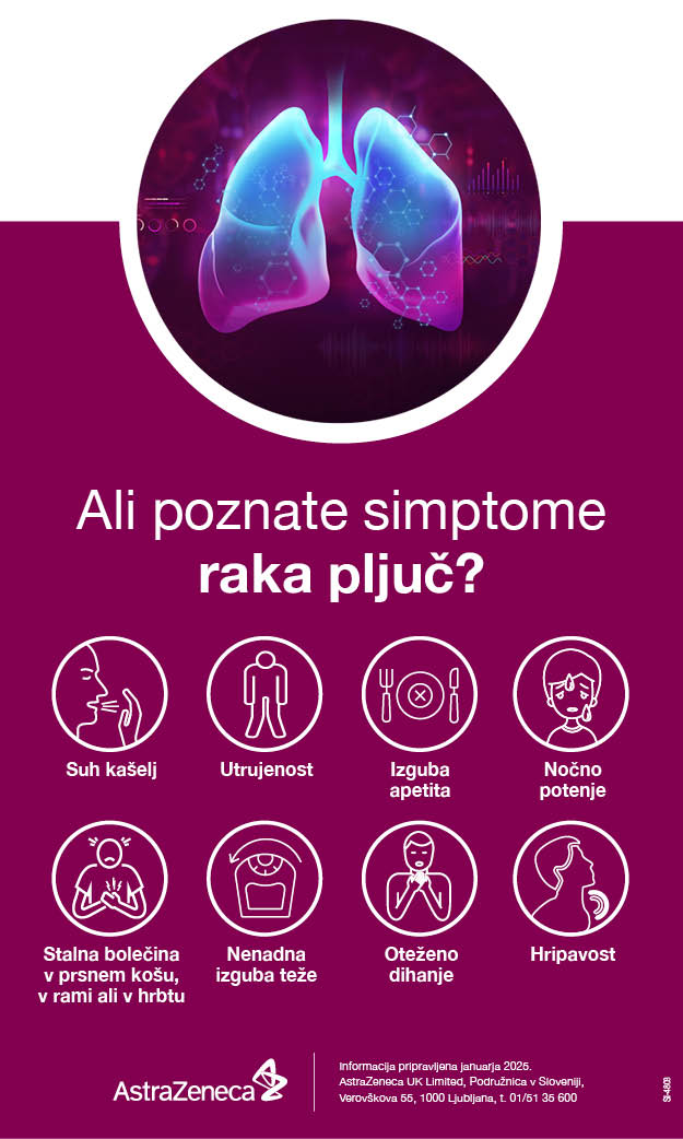 Dobra novica je, da nastaja novi presejalni program za pljučnega raka LUKA, ki se bo začel že letos kot poskusni projekt. Da je pljučni rak velik javnozdravstveni problem, dokazujejo podatki, da za pljučnim rakom zboli okoli 1.600 ljudi na leto, 1.200 jih umre in vsako peto smrt zaradi raka pripišemo pljučnemu raku. Kot je na dogodku povedala doc. dr. Martina Vrankar, je njihov cilj priprava vzdržnega presejalnega programa, torej več deset tisoč pregledov s CT na leto. »Umrljivost želimo zmanjšati za 20 do 25 %, prav tako želimo povečati delež tistih, ki jih odkrijemo v zgodnjem stadiju. Želimo tudi znižati pojavnost tega raka in ljudi spodbuditi, da opustijo kajenje.«